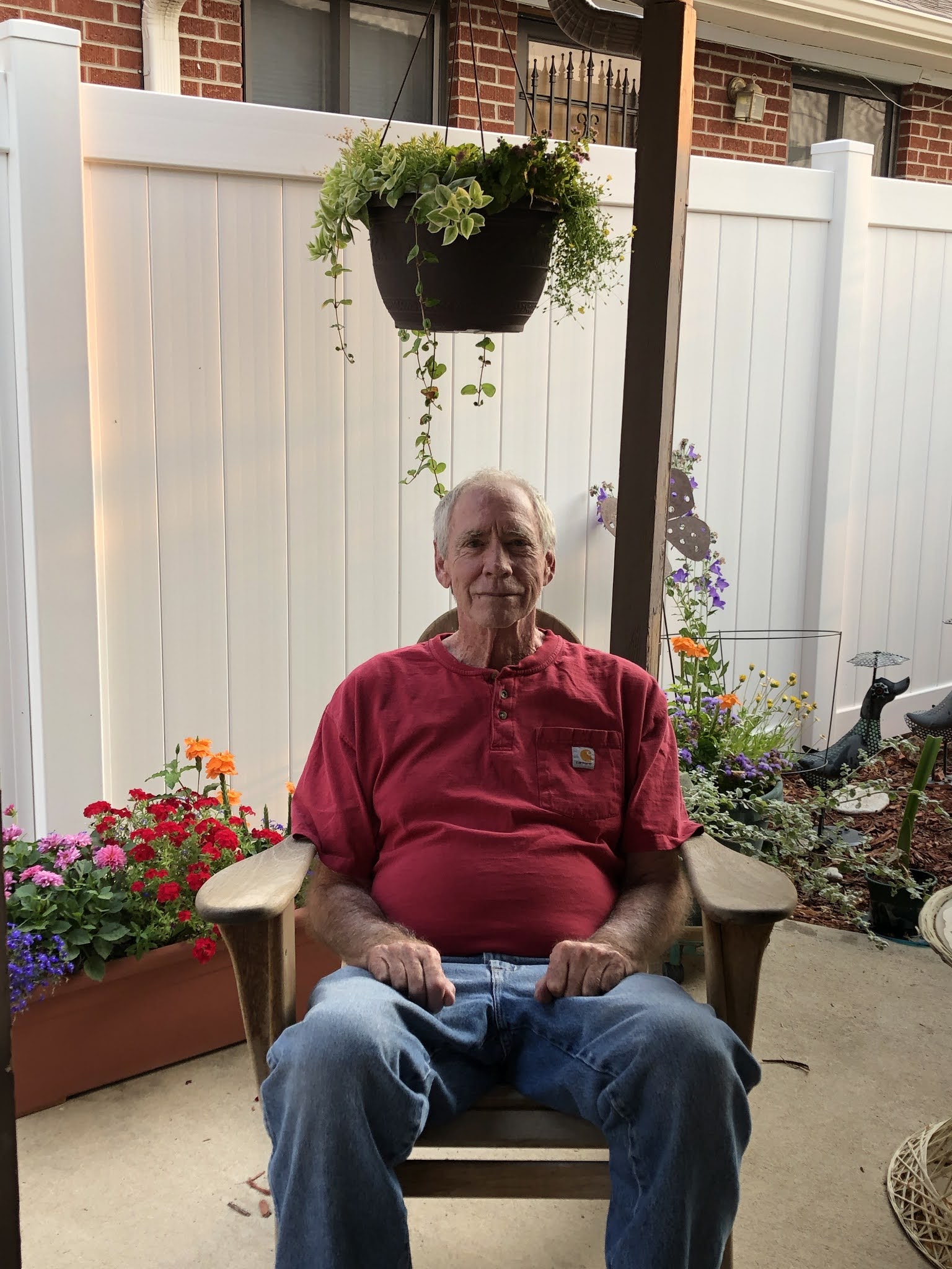 This next picture is Ric sitting outside on one of our chairs. I thought the flowers in that area were really pretty and wanted to get this picture.