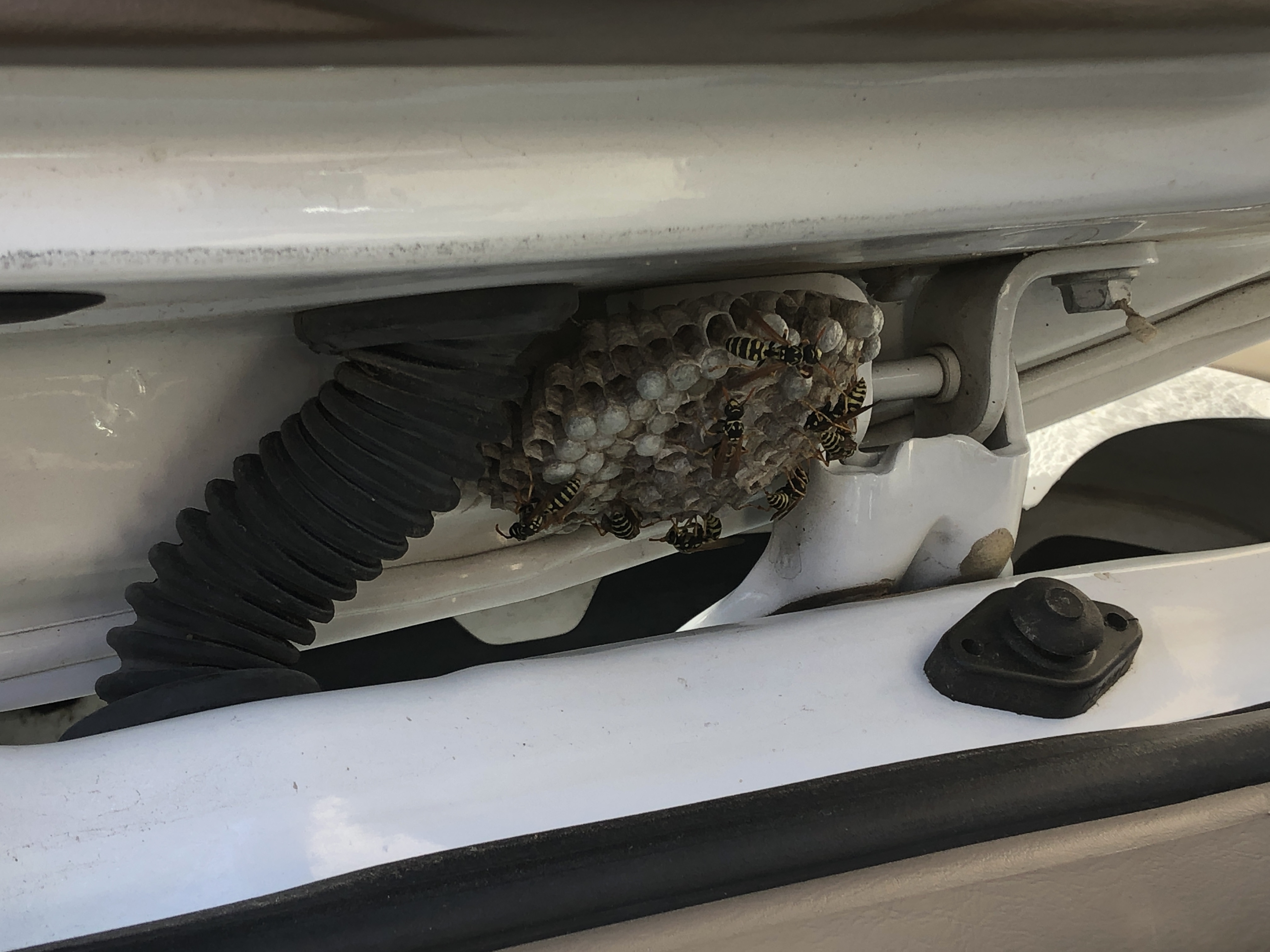 Keep guessing. Okay it's really hard. It's a wasp nest that was in the door of dad's truck. Can you believe that? We couldn't figure out why there were so many wasp around the front door and now we know. Dad got some wasp spray and since he was so afraid of getting stung, I had to put on some protecting clothing and off I went to spray that nest. Mom and dad were so proud of me and I must admit it was the scariest thing I've ever done. Well since the last brave thing I did anyway. Well, mom wants to get this sent so of course I have to cut my story short. Have a great day and I love you all.